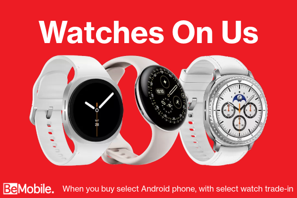 Score a Google Pixel Watch 4, Galaxy Watch 8, or Galaxy Watch 8 Classic for $0 when you buy a select Android phone and trade in a select watch. Stay connected, hands-free — all on us.