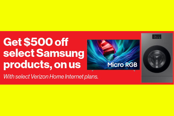 Get $500 off select Samsung products when you purchase an eligible item $799+ at Best Buy with select Verizon Home Internet plans. Don't miss this limited-time offer!